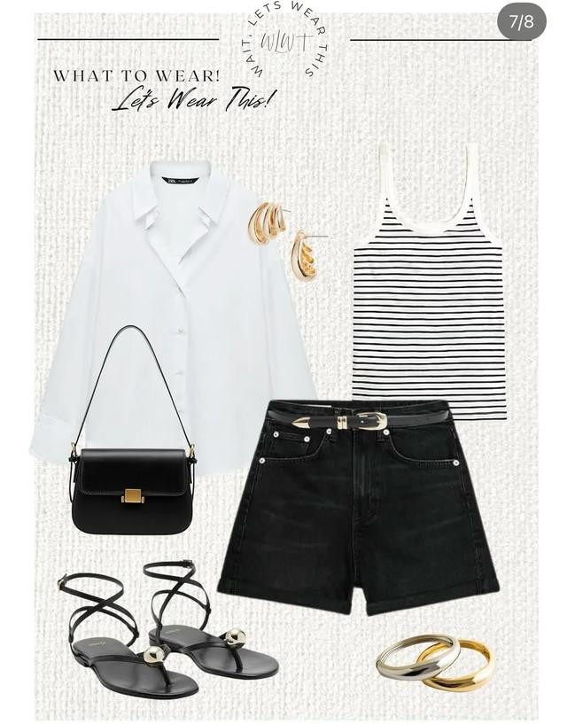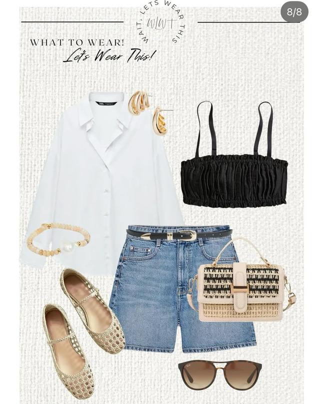 而回归基本永远不会有错,高腰牛仔短裤,配衣角飘逸的白衬衫,还可以微微解开纽扣,配黑色小抹胸背心,明亮又活泼。